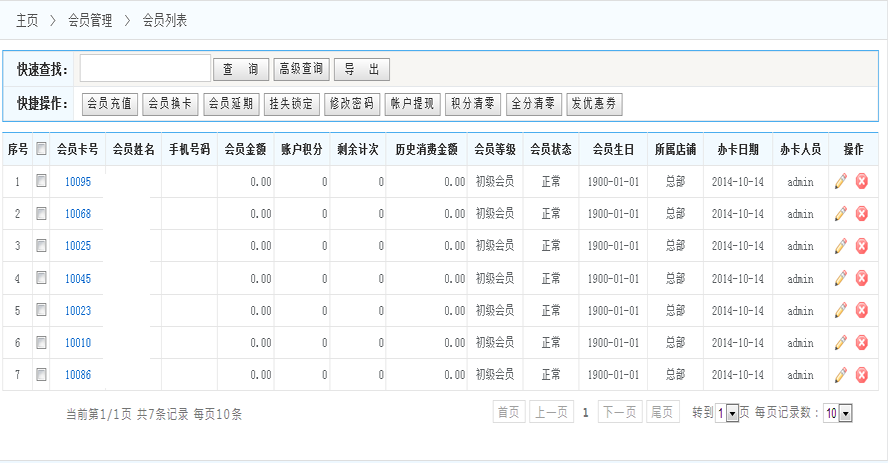 3.會員列表:列表中編輯和刪除 可以對會員進行編輯和刪除會員的信息.