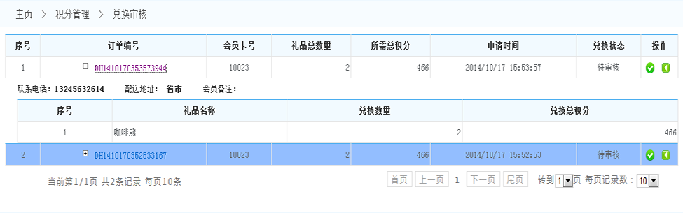 2.通過審核:點(diǎn)擊通過審核后,會(huì)員將得到禮品 將會(huì)扣減會(huì)員積分