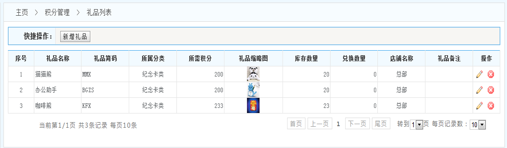 禮品列表:展示系統(tǒng)中所有類(lèi)別的禮品